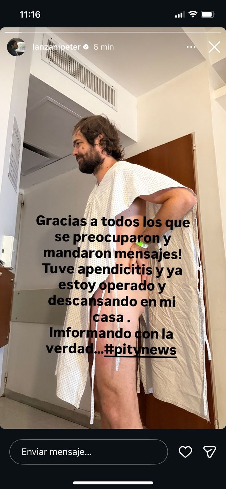 Peter Lanzani fue ingresado al Sanatorio Colegiales, según informó ayer Pepe Ochoa en Lam, pero este martes el actor se encargó de contar lo que le pasó.