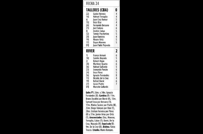 River venció esta noche a Talleres de Córdoba por 2-0 como visitante y se aseguró el cuarto puesto de la Superliga Argentina de Fútbol, que otorga un Repechaje para la Copa Libertadores de América 2020.