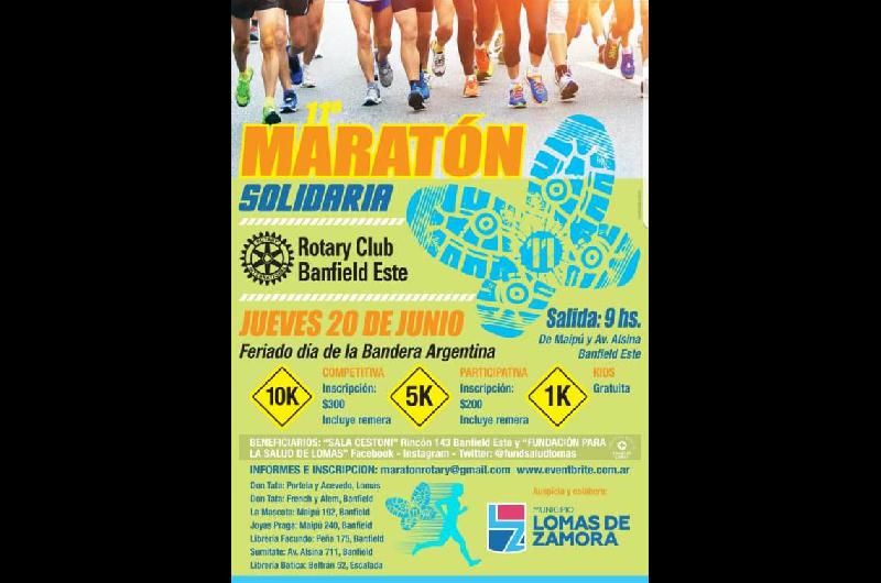 Con la premisa de brindar ayuda a distintas entidades de Lomas de Zamora, el Rotary Club Banfield Este organizará el 20 de junio la 11º edición de la Maratón Solidaria por las calles de la ciudad y ya está abierta la inscripción para los que quieran participar del evento y colaborar con los más necesitados.