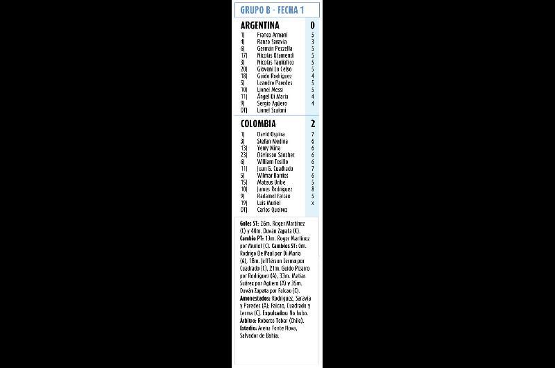 Colombia fue claramante superior al equipo de Scaloni, que jugó un mal primer tiempo y apenas esbozó una mejoría en el complemento. Roger Martínez y Duván Zapata, que saltaron desde el banco, marcaron los dos golazos de los Cafeteros.