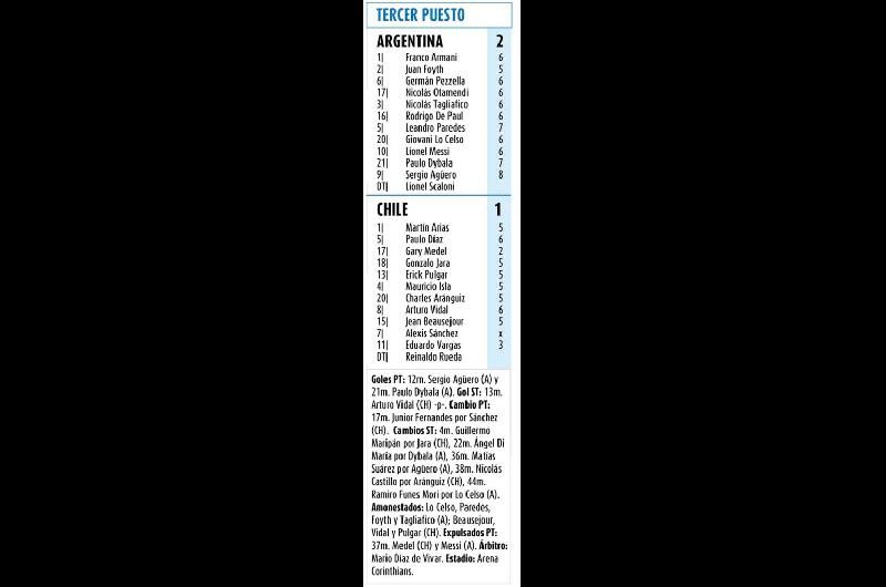 Aún sin Messi, Argentina fue superior. Chile se encontró con el descuento por un penal de Vidal. Ahí el VAR actuó, como no lo hizo en la jugada de Messi. Pero ni así el equipo trasandino inquietó. Agüero tuvo sus situaciones, quizás la salida de Dybala apagó un poco la chispa en ofensiva, pero Argentina terminó de pie y se llevó el premio consuelo del tercer puesto. Quedan amistosos por delante (tres de seis confirmados), Scaloni hizo el recambio, ahora habrá que ver que deciden desde la AFA en cuánto a su continuidad en el banco.