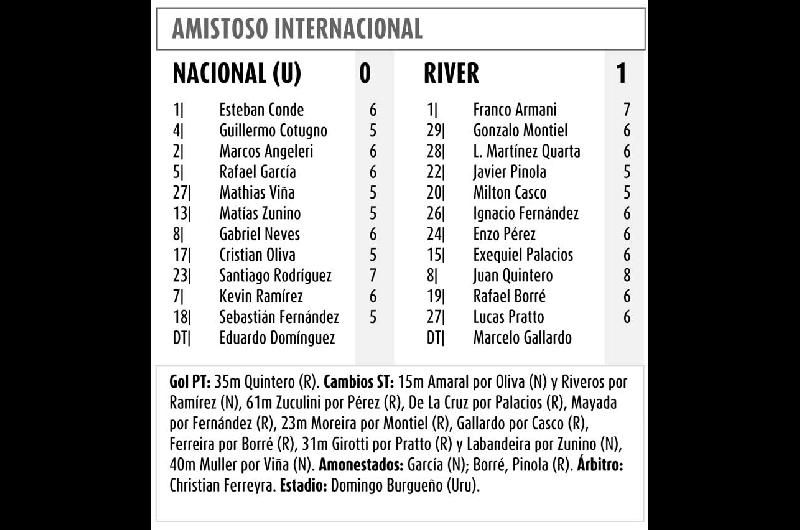 River arrancó afilado el 2019 y este martes, en su primera presentación del año, sumó su primer triunfo: en Uruguay, le ganó bien por 1-0 a Nacional y festejó un buen resultado en su primer amistoso de la pretemporada.