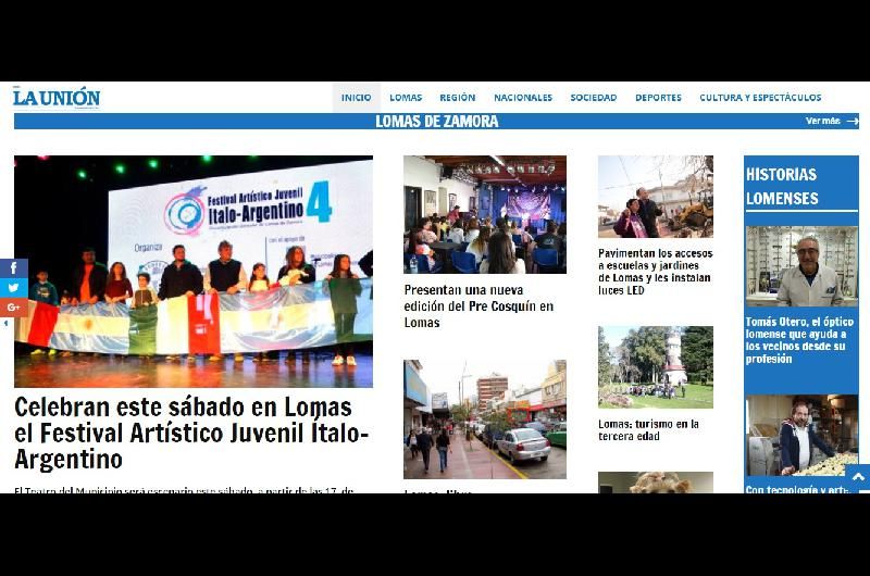 Así, desde la sección “Inicio” de www.launion.com.ar, los lectores pueden enterarse en forma ágil de las noticias destacadas y navegar por las diversas secciones, entre ellas, varias nuevas como “Historias lomenses”, con vecinos como protagonistas; “De puño y letra”, con las columnas del periodista Sergio Lapegüe; “Talento en Acción”, que incluye a deportistas destacados de la región”, o “Arte a Mano”, con los trabajos artísticos de Martha Cacacio.