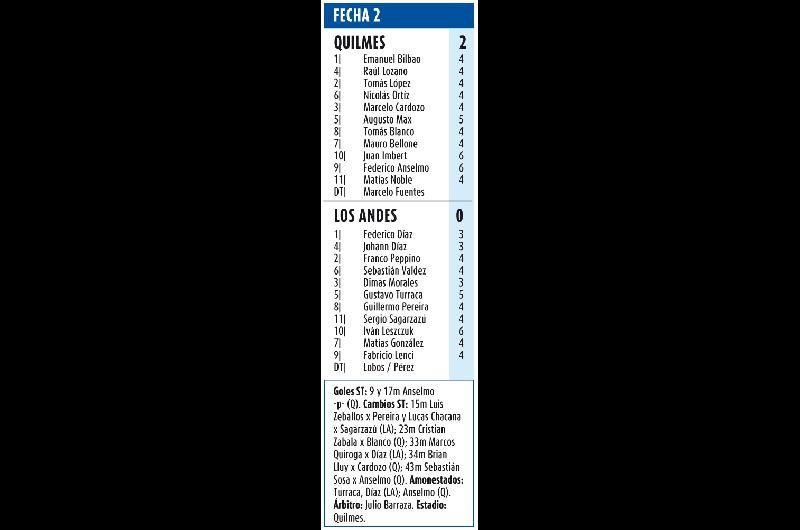 En este Quilmes - Los Andes, los jugadores estuvieron a la altura de las expectativas y, acorde a lo que muestra la categoría habitualmente, jugaron muy poco. Ni siquiera los más habilidosos lograron con su voluntad romper la lógica de un partido en el que sobraron los choques, los resbalones (la cancha parecía enjabonada), las cabezas mirando el pasto y los pelotazos de punta para arriba.