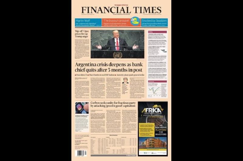 A menos de 48 horas de que el presidente, Mauricio Macri, visitara sus instalaciones durante su paso por Nueva York, el periódico Financial Times publicó un duro informe sobre el futuro de la economía local bajó el título “La Argentina profundiza su crisis”.