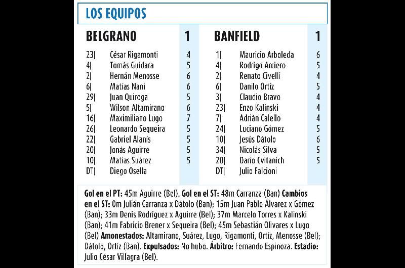 En un final insólito, Banfield rescató un punto de su visita a Belgrano: perdía hasta los 48 del segundo tiempo pero a Rigamonti le cobraron (bien) retención de pelota, Cvitanich sacó rápido y Carranza marcó. Fue 1 a 1 en Córdoba.