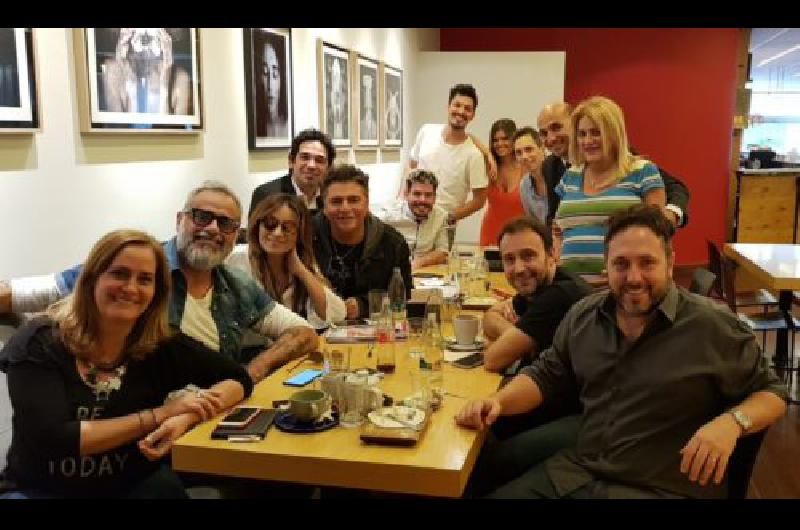 El periodista reunió a su equipo para darle la noticia y dijeron whisky Adrián Pallares, Marcela Tauro, Damián Rojo, Daniel Ambrosino, Guido Záffora, Angie Balbiani, Pablo Layous, Alejandro Guatti y Débora Damato, a punto de dar a luz a Lola.