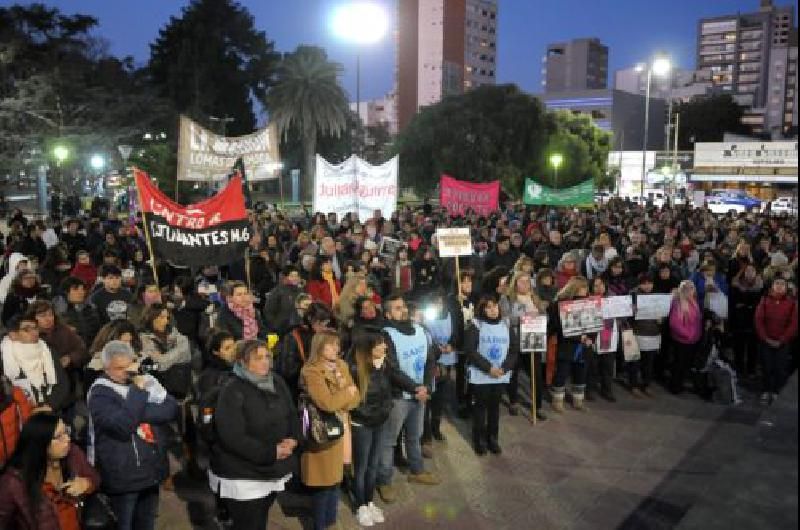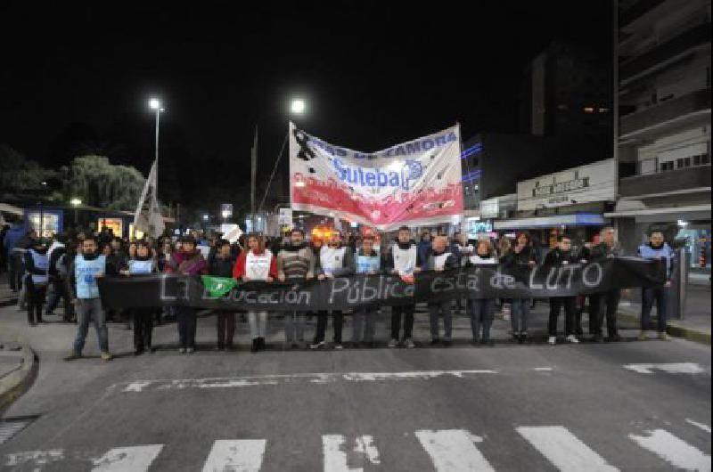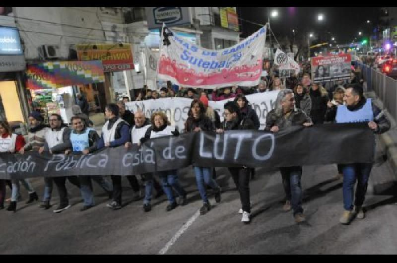 MARCHA EN LOMAS. Docentes, alumnos y vecinos marcharon ayer a la Plaza Grigera y recorrieron el centro de Lomas para pedirle al Gobierno bonaerense que se haga cargo del mantenimiento de las escuelas. “La educación pública no puede esperar” y “la educación pública está de luto”, algunos de los mensajes en carteles y banderas.