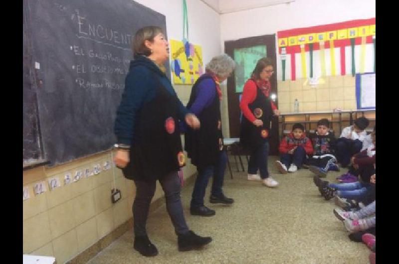 Con el objetivo de introducir cada vez a más niños en el mundo de los cuentos, el trío de mujeres narradoras visitó el establecimiento educativo y se presentó ante unos 70 alumnos de 1er ciclo.