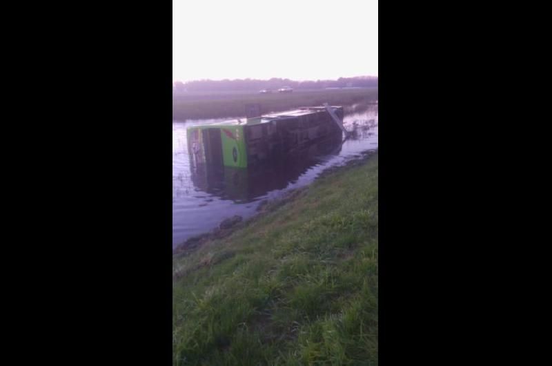El hecho ocurrió pasadas las 7, cuando por motivos que se investigan, el chofer perdió el control del micro y terminó tumbado en el cantero central, a la altura del kilómetro 373.