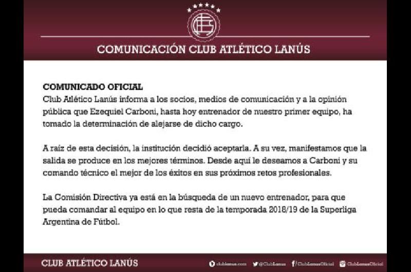 Ezequiel Carboni dejó de ser el entrenador de Lanús. Luego de la derrota como local ante Aldosivi de Mar del Plata por 1-0, los dirigentes se reunieron con el cuerpo técnico y el plantel. Y tras casi una hora de charlas, y suspendida la conferencia de prensa del Kely, el rumor se hizo realidad. La situación no daba para más.