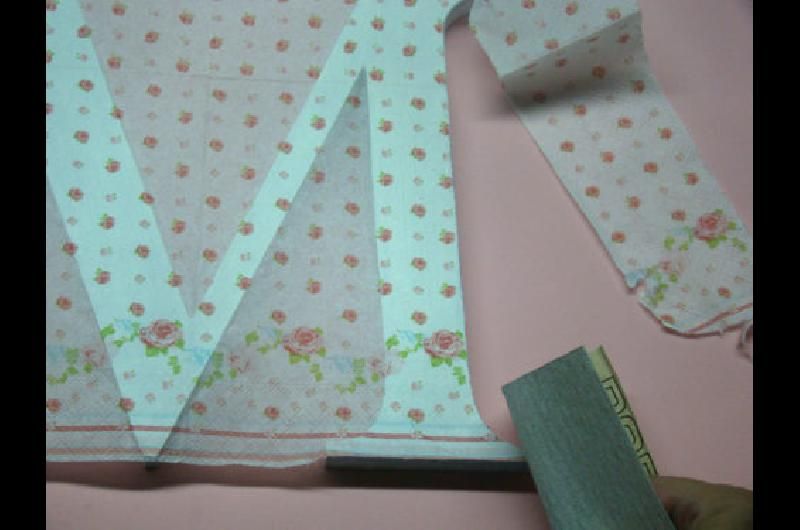 3- Para cortar el excedente de servilleta de forma pareja y prolija, pasar la lija suavemente por todas las aristas de la pieza de madera. El papel se desprenderá fácilmente.