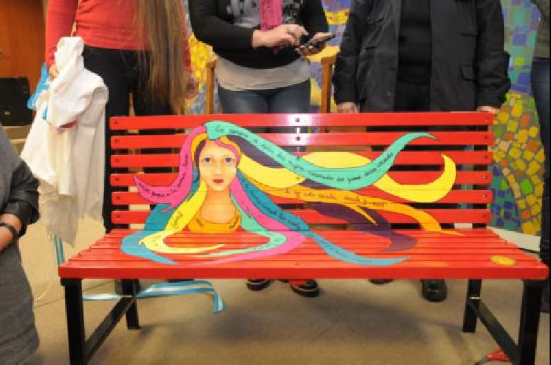Ni la lluvia evitó que se llevara a cabo la inauguración del Banco Rojo, un proyecto cultural y pacífico de prevención, información y sensibilización contra el femicidio que ya estará instalado en el patio interno del Hospital Gandulfo.