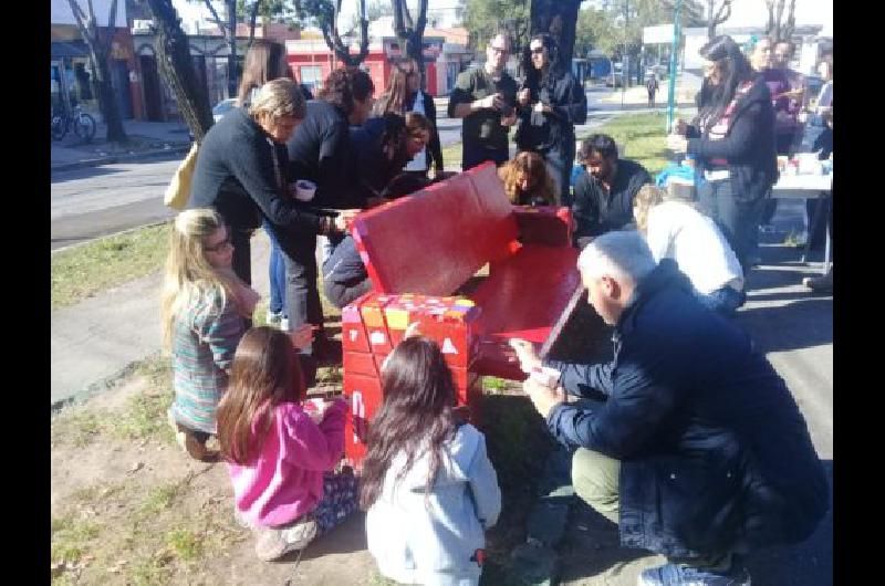 El banco ya está instalado entre las calles Doctor Melber y Doyhenard, lugar donde los vecinos colaboraron con pinceles y pintura junto a la artista local.