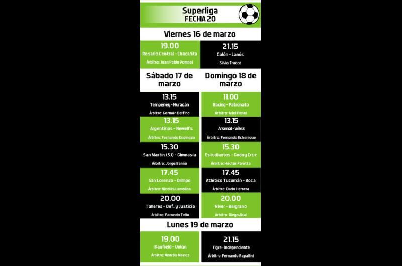 A continuación, días, horarios y árbitros para el próximo fin de semana