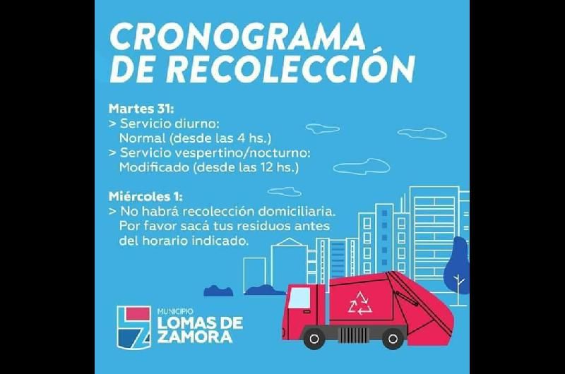 A su vez, mañana, 1° de enero de 2020, no habrá servicio, por lo que recomiendan sacar la basura hoy o esperar hasta el jueves.