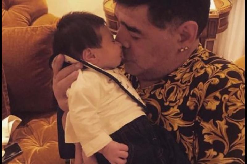 Maradona viajó junto a Rocío Oliva desde Dubai hasta Italia para conocer al hijo de Diego Junior y Nunzia, y se enterneció con este segundo nieto, que mantiene por cuarta generación su nombre.