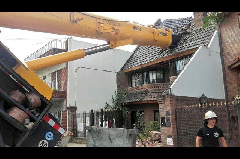 En Mataderos, una grúa volcó su brazo hidráulico contra el techo de una vivienda y lo destrozó. Hay cinco heridos. Mirá las impactantes fotos.