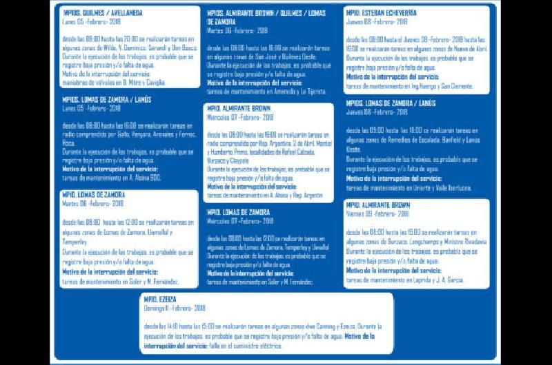 Por tareas de mantenimiento que estará ejecutando, la empresa AySA dio a conocer en qué días, horarios y localidades habrá baja presión o falta de agua. Enterate acá si tu zona está incluida para tomar recaudos: