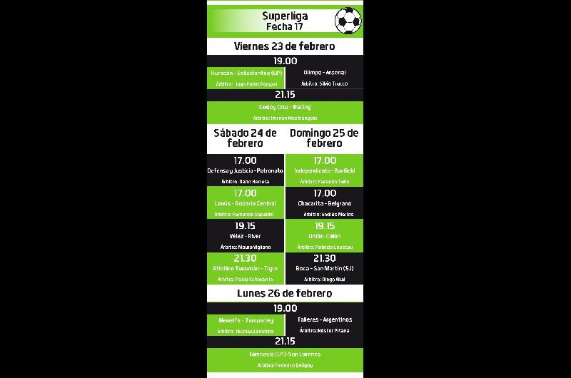 La AFA dio a conocer los días, horarios y árbitros de la 17° de la Superliga Argentina de Fútbol. A continuación, todo el detalle: