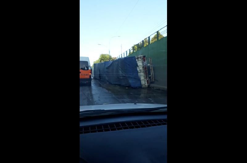 Los vecinos que pasan habitualmente por el paso bajo nivel de Temperley se encontraron pasadas las 6 de la mañana de este lunes con un vuelco de un camión en medio del túnel.