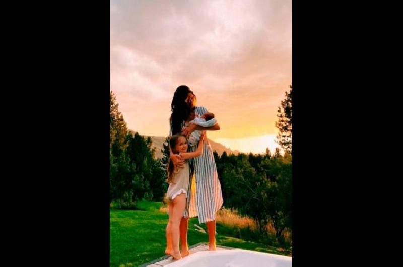 Instalada en San Martín de los Andes, la modelo posteó una bella postal con su hijo en brazos y con su hija abrazándola.