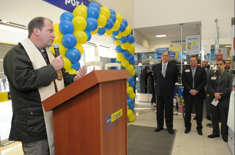 El Padre Cristián se encargó de bendecir el nuevo espacio ubicado en Laprida 382 que cuenta con 80 empleados y una gran variedad de productos de los rubros de electrónica, muebles, indumentaria y calzado de primeras marcas.