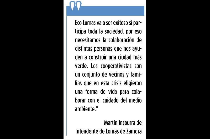 “Eco Lomas va a ser exitoso si participa toda la sociedad, por eso necesitamos la colaboración de distintas personas que nos ayuden a construir una ciudad más verde”, señaló el intendente, Martín Insaurralde, quien destacó a los cooperativistas como “un conjunto de vecinos y familias que en esta crisis eligieron una forma de vida para colaborar con el cuidado del medio ambiente”.