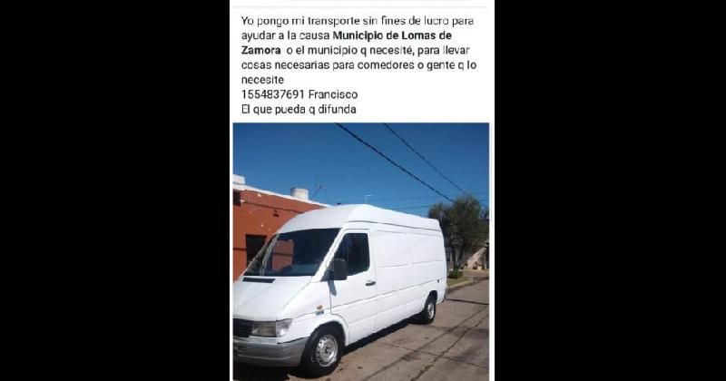 La solidaridad aflora en Lomas a través de las ideas de los propios vecinos que quieren colaborar en este momento crítico que vive el mundo. Francisco Pinola es de Llavallol y decidió publicar en su cuenta de Facebook la foto de su camioneta y ofrecerla para hacer traslados de alimentos en la zona.