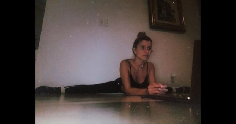 Laurita Fernández está cumpliendo su correspondiente aislamiento en la casa de Nicolás Cabré, luego de que departamento quedara a la miseria por la rotura de un caño, y elonga mientras mira su serie favorita en la compu, demostrando que puede hacer dos cosas a la vez.