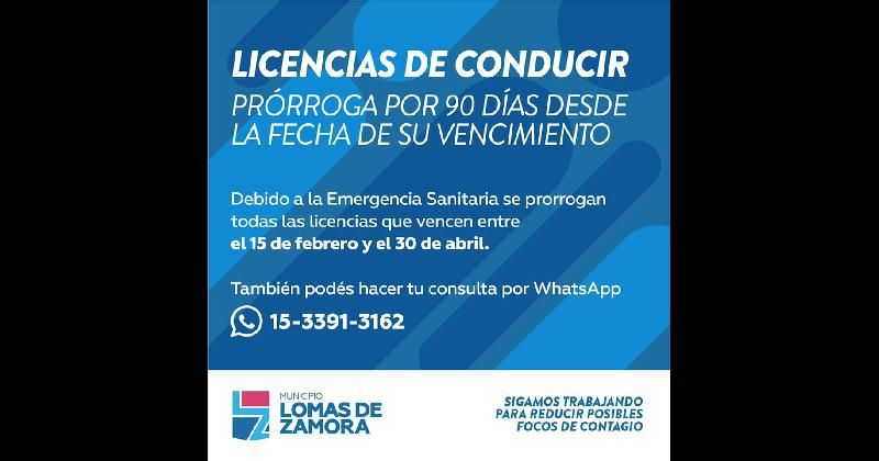 En plan de resguardar a los vecinos de Lomas frente a la pandemia, el Municipio extendió el plazo para renovar el registro de conducir por un plazo de 90 días más luego del vencimiento.