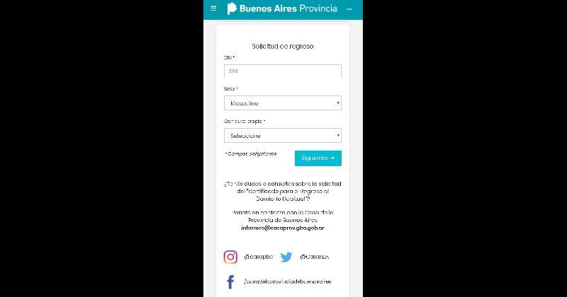 El Gobierno bonaerense habilitó uno nuevo Certificado para el Regreso al Domicilio Habitual para las personas que están varadas dentro del país y quieren volver a su casa en su vehículo particular. Desde hoy, quienes viven dentro de la provincia de Buenos Aires y necesitan regresar a su domicilio tienen que registrarse en https://regresoacasa.gob.gba.gob.ar/, llenar los datos personales, como nombre, apellido, DNI, patente del auto en el que circularán, punto de origen y de destino. Quienes deban ser recogidos por algún familiar deberán detallarlo en la solicitud.