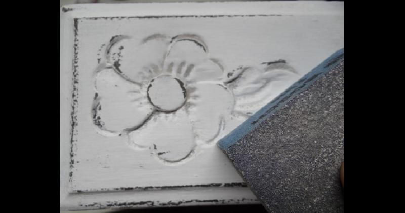 Lijar con lija mediana toda la pieza, desgastando especialmente los sectores en que se aplicó la vela para obtener el efecto deseado. Retirar el polvillo.