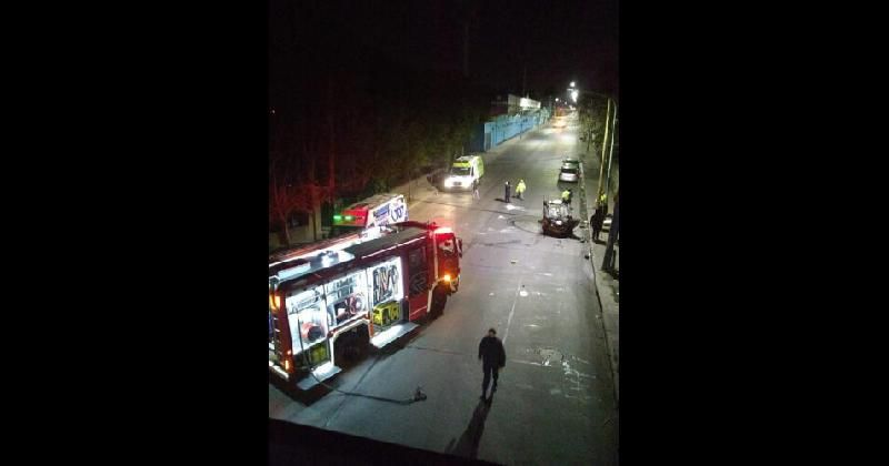 Los Bomberos Voluntarios junto al equipo de Emergencias Lomas llegaron al lugar para socorrer a los pasajeros que iban a bordo de un auto que volcó pasadas las 3.30 de la madrugada en 9 de Julio y Bransen, Temperley.