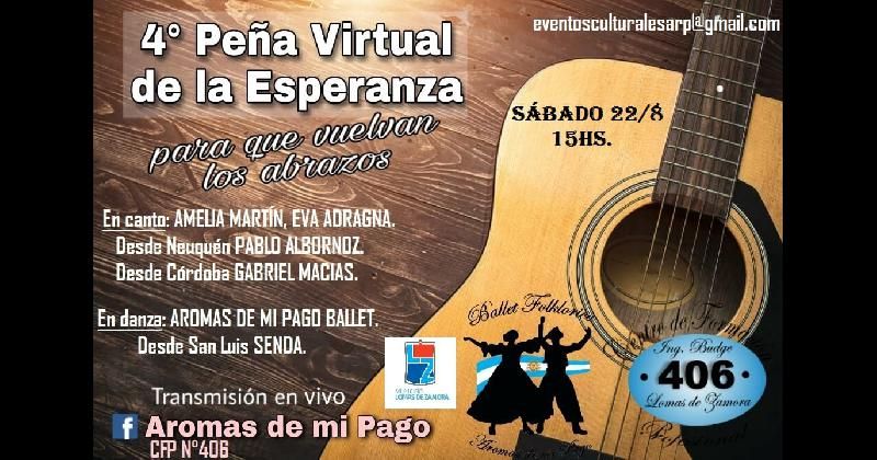 Con la participación de artistas locales e invitados especiales de tres provincias, el Ballet Aromas de mi Pago realizará este sábado la cuarta edición de la Peña Virtual de la Esperanza.