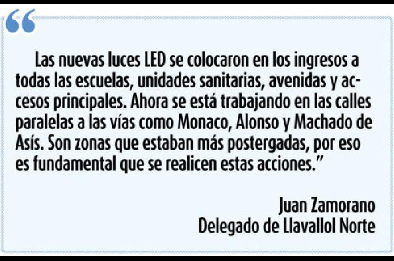 LED. Las últimas luminarias se colocaron en toda la extensión de la calle Mónaco, desde San Lorenzo hasta Frías; Alonso, entre Frías y San Agustín; y sobre Machado de Asís, de Alonso a Avellaneda.