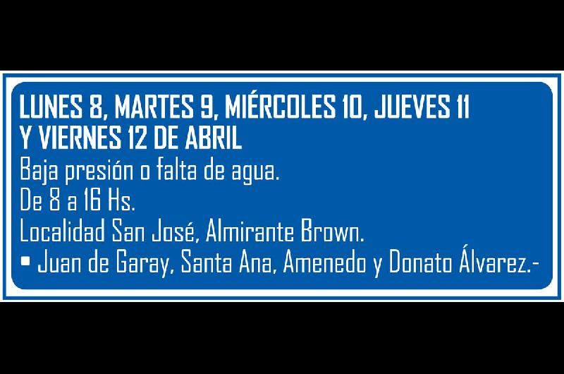 La empresa estatal Aguas y Saneamientos Argentinos publicó un cronograma de inconvenientes en el servicio a raíz de tareas de mantenimiento de la red en Brown.