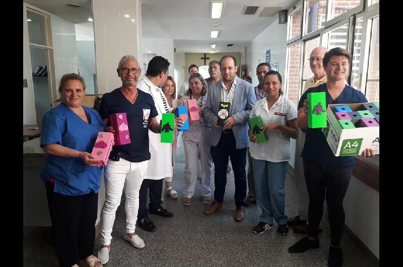 Hasta el Hospital Alende de Budge llegaron estos vecinos solidarios de Banfield, ya conocidos por ser los creadores de las manos ortopédicas en 3D, y personal del Municipio para entregar unos veintena de porta sueros que irán rotando de habitación del área infantil según los gustos de cada paciente.