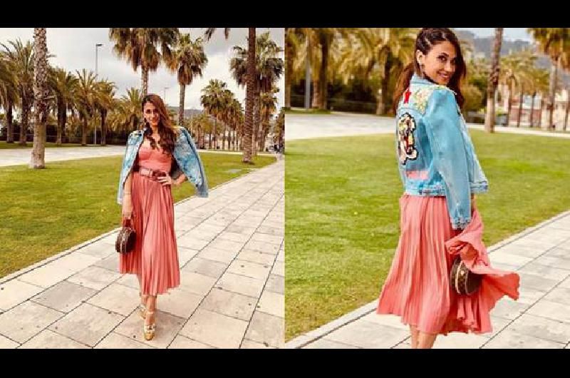 Antonella Roccuzzo se sumó a la “Barcelona Bridal Fashion Week” y fue una las figuras de esta feria de indumentaria. La mujer de Lionel Messi lució un vestido color salmón con un lindo cinturón y unos zapatos dorados con brillos.
