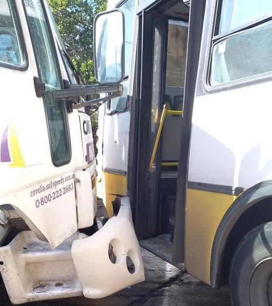 Un colectivo y un camión protagonizaron un fuerte choque este lunes por la tarde en Lomas de Zamora. Afortunadamente no hubo personas heridas.