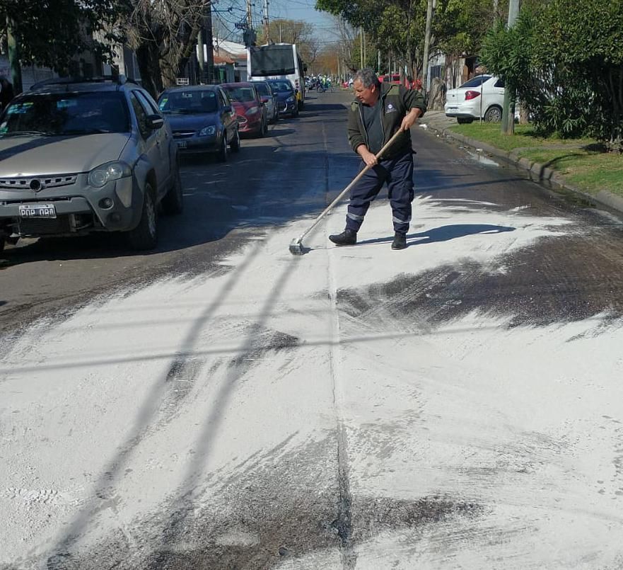 En el lugar intervino personal de Defensa Civil y de la Delegación Lomas Oeste. Tuvieron que tirar 10 bolsas de cal y arena en esa esquina para neutralizar el efecto del líquido derramado. En tanto, efectivos policiales colaboraron para cortar el tránsito por unos minutos.