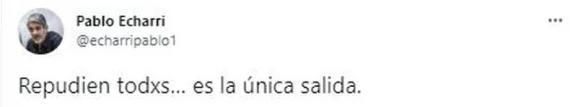 "Repudien todos, es la única salida", considero Pablo Echarri. "Le dijimos nunca más a la violencia hace 39 años, tenemos que defender nuestra democracia", opinó Thelma Fardín.