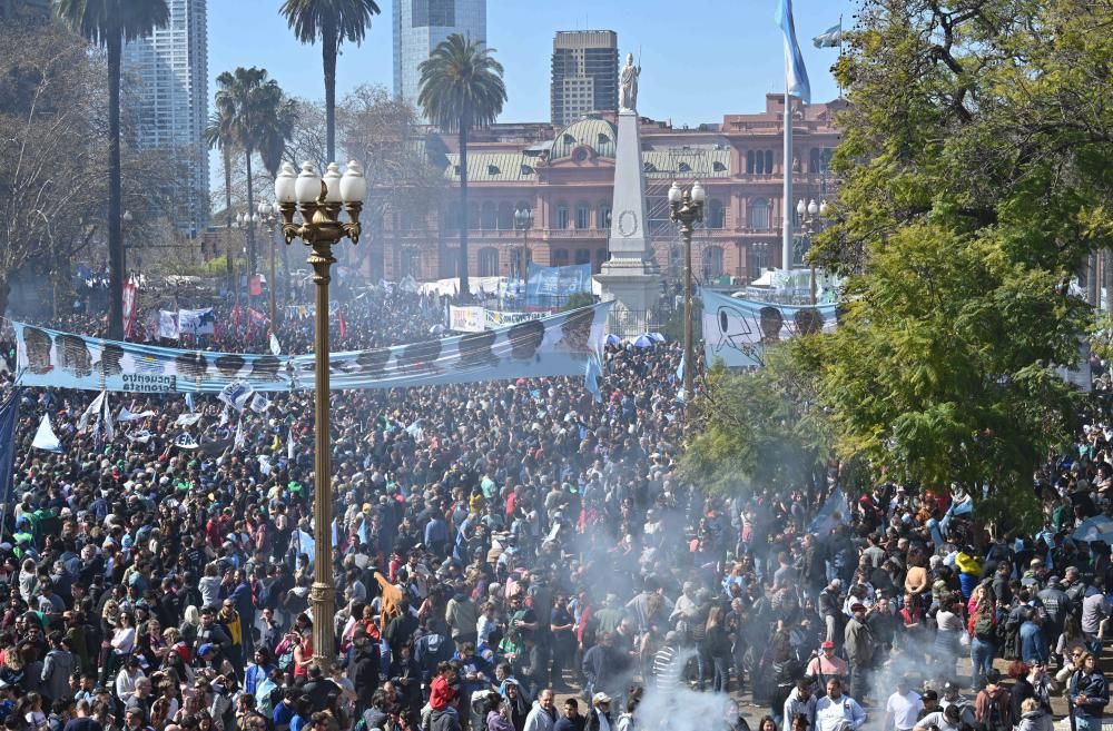 Las columnas de manifestantes también se ubicaban sobre la avenida de Mayo y en las diagonales Sur y Norte, que desembocan en la Plaza, donde se armó un escenario frente a la Casa Rosada.