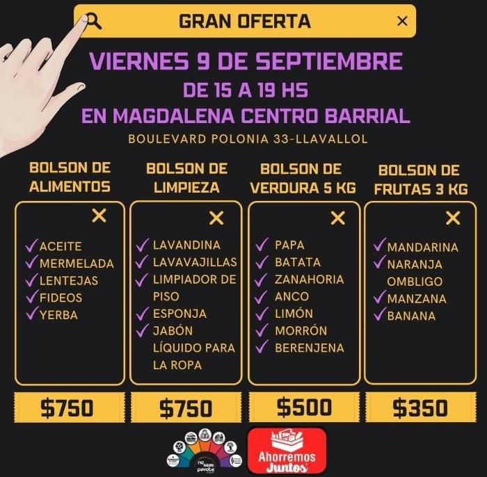 Los que se acerquen hasta Magdalena Centro Barrial de Llavallol se van a encontrar con una feria americana con ropa a precios muy bajos, de 15 a 20. En tanto, de 15 a 19, se podrán adquirir bolsones de alimentos económicos gracias a la cooperativa Ahorremos Juntos que va a estar en el lugar ofreciendo sus productos.