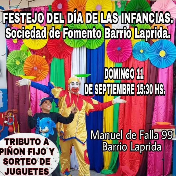 La Sociedad de Fomento Barrio Laprida prepara para este domingo a partir de las 15 un gran festejo del Día de las Infancias para que puedan participar todos los chicos de la zona y alrededores ya que es con entrada libre y gratuita.