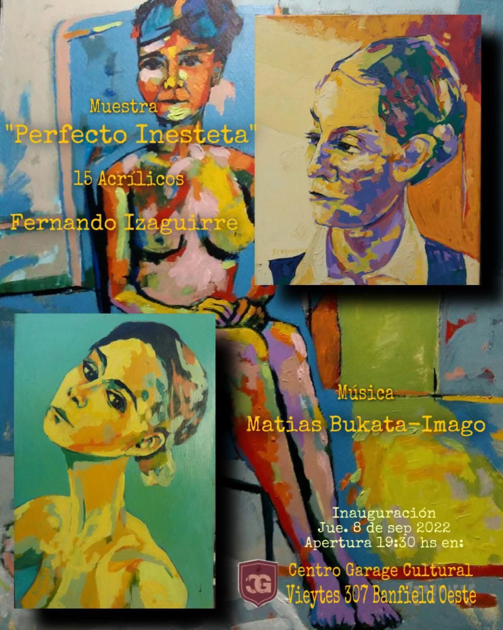 En el marco de sus 25 años como artista, el muralista lomense Fernando Izaguirre presentó la muestra "Perfecto Inesteta" en el Centro Garage Cultural (Vieytes 307, Banfield Oeste). Se trata de una serie de 15 obras que están expuestas de forma gratuita para todos los vecinos, donde la mujer toma un rol fundamental en cada una de las pinturas.