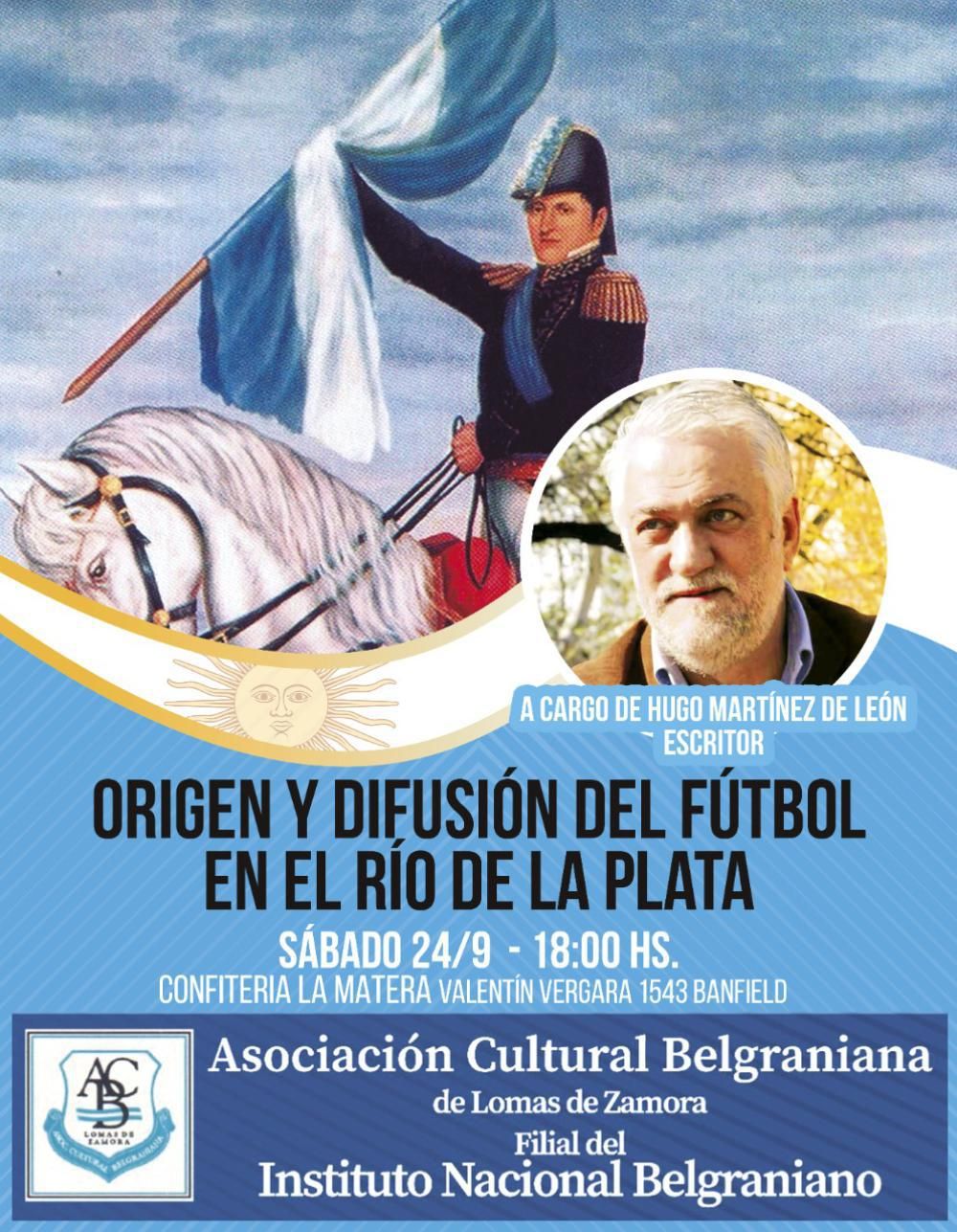 La Asociación Cultural Belgraniana de Lomas saldrá de su zona de confort y sorprenderá a los vecinos con una conferencia llamada "Origen y difusión del fútbol en el Río de la Plata", en donde buscarán introducirse en los inicios del deporte más popular del país: se llevará a cabo el sábado 24 de septiembre, a partir de las 18 en la Confitería La Matera (Valentín Vergara 1543), con la entrada totalmente gratuita.