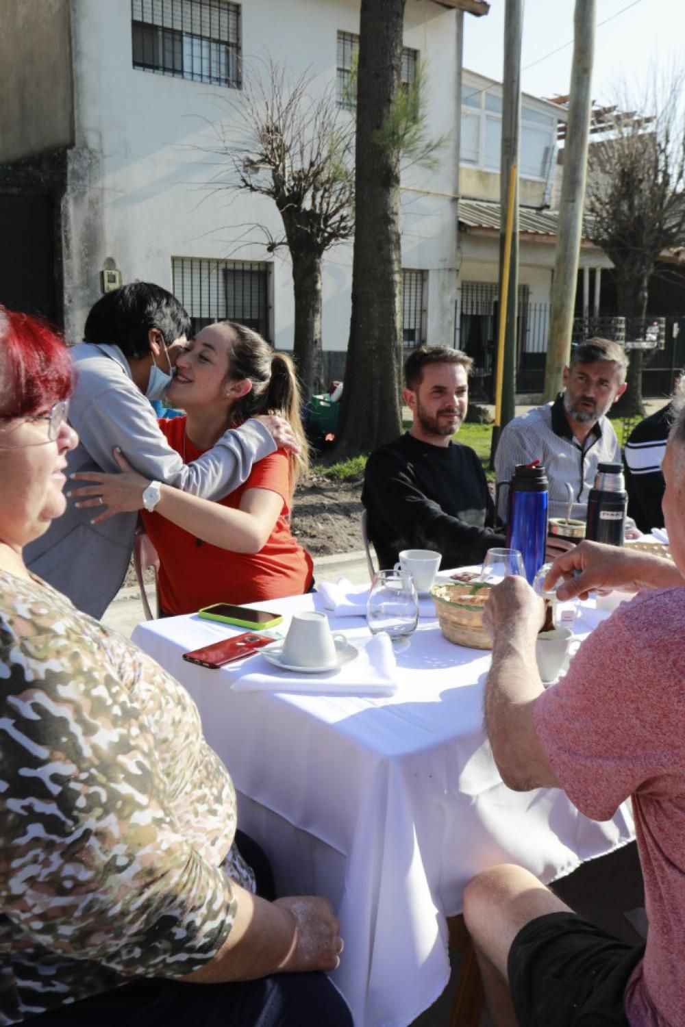 Como parte de la inauguración de la obra, los funcionarios compartieron un desayuno con vecinos de las calles Merlo y Jorge Newbery.