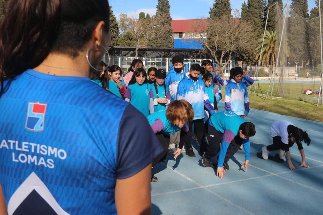 A través del área de Deportes, estudiantes de sexto grado de más de 100 escuelas primarias de distintos barrios de Lomas tienen la posibilidad de visitar el Parque Eva Perón durante cinco días para familiarizarse con la pista de atletismo y tener un primer contacto con las tres grandes disciplinas de este deporte: la velocidad, el salto y el lanzamiento.