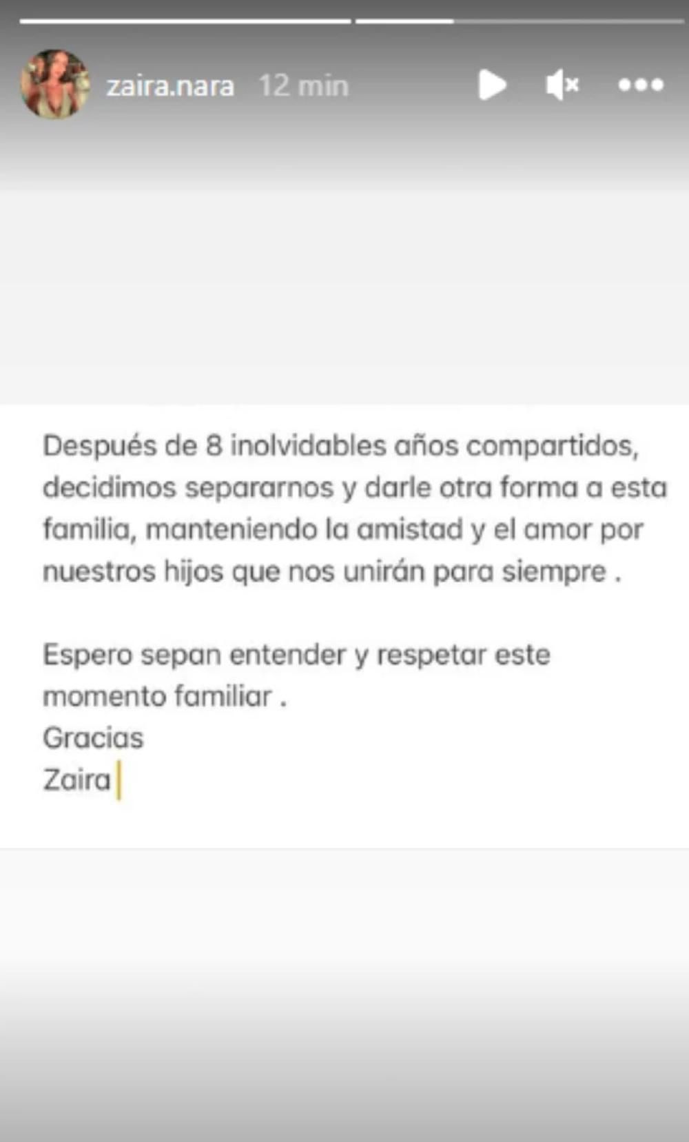 "Después de ocho inolvidables años compartidos, decidimos separarnos y darle otra forma a esta familia, manteniendo la amistad y el amor por nuestros hijos que nos unirán para siempre. Espero sepan entender y respetar este momento familiar. Gracias", dijo la hermana menor de Wanda.